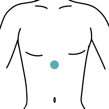 Location: on the midline of the upper abdomen, midway between the umbilicus and sternocostal angle of the ribcage