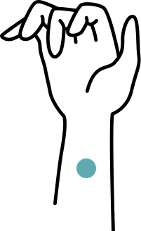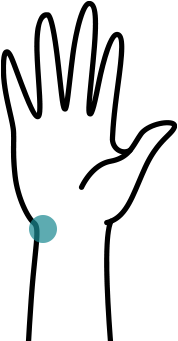 Location: on the midline of the inner wrist, about the length of two thumb width’s from the wrist crease, between the tendons of m. palmaris longus and m. flexor carpi radialis