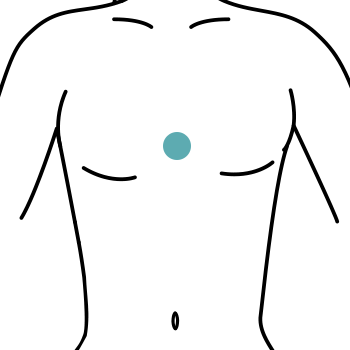 Location: on the midline of the chest, level with the fourth intercostal space, midway between the nipples