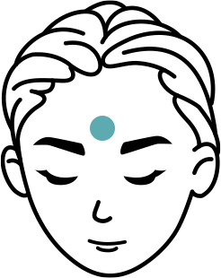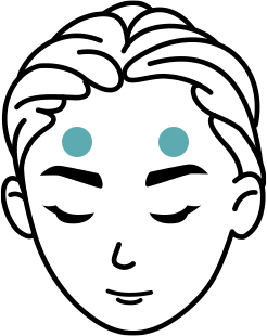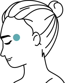 Location: on the forehead, about the width of your thumb above the midpoint of the eyebrow on each side.